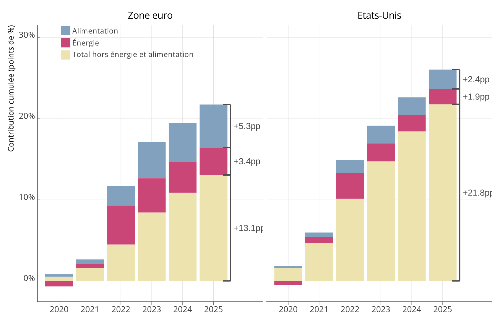 Le retour de l’inflation en France depuis deux ans, dont l’origine vient principalement d’un choc de prix d’importations lié à la hausse vertigineuse de la facture énergétique, pose la question centrale de la répartition de ce choc au sein des agents économiques.