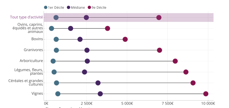 Inégalités entre agriculteurs français : un rapport de 1 à 10 entre les revenus d’activité des 10% les plus pauvres et les 10% les plus riches.